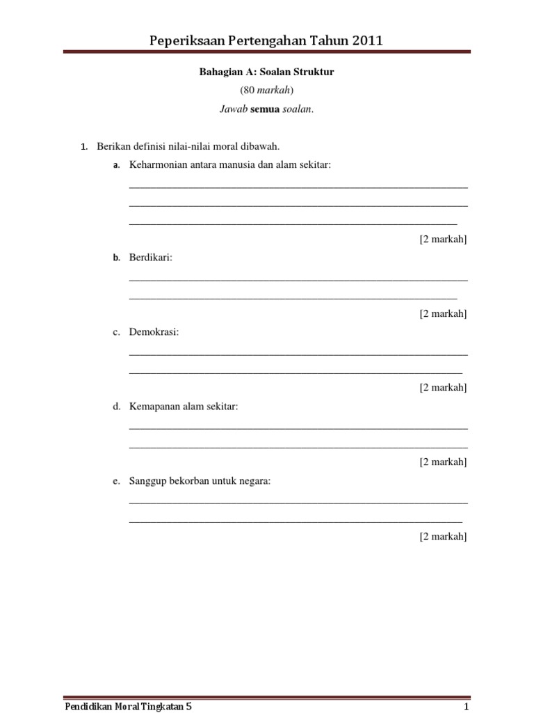 Soalan Peperiksaan Awal Tahun Pendidikan Moral Tingkatan 5 Terbaik Pendidikan Moral Tingkatan 1 Peperiksaan Akhir Tahun Documents Skoloh
